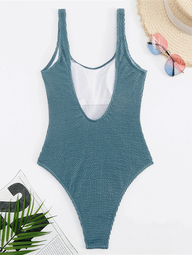 One Piece Ribbed Knit Swimsuit with Tie Back