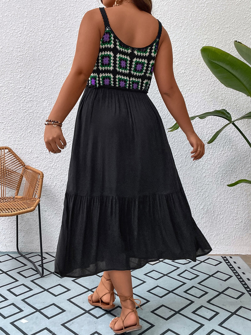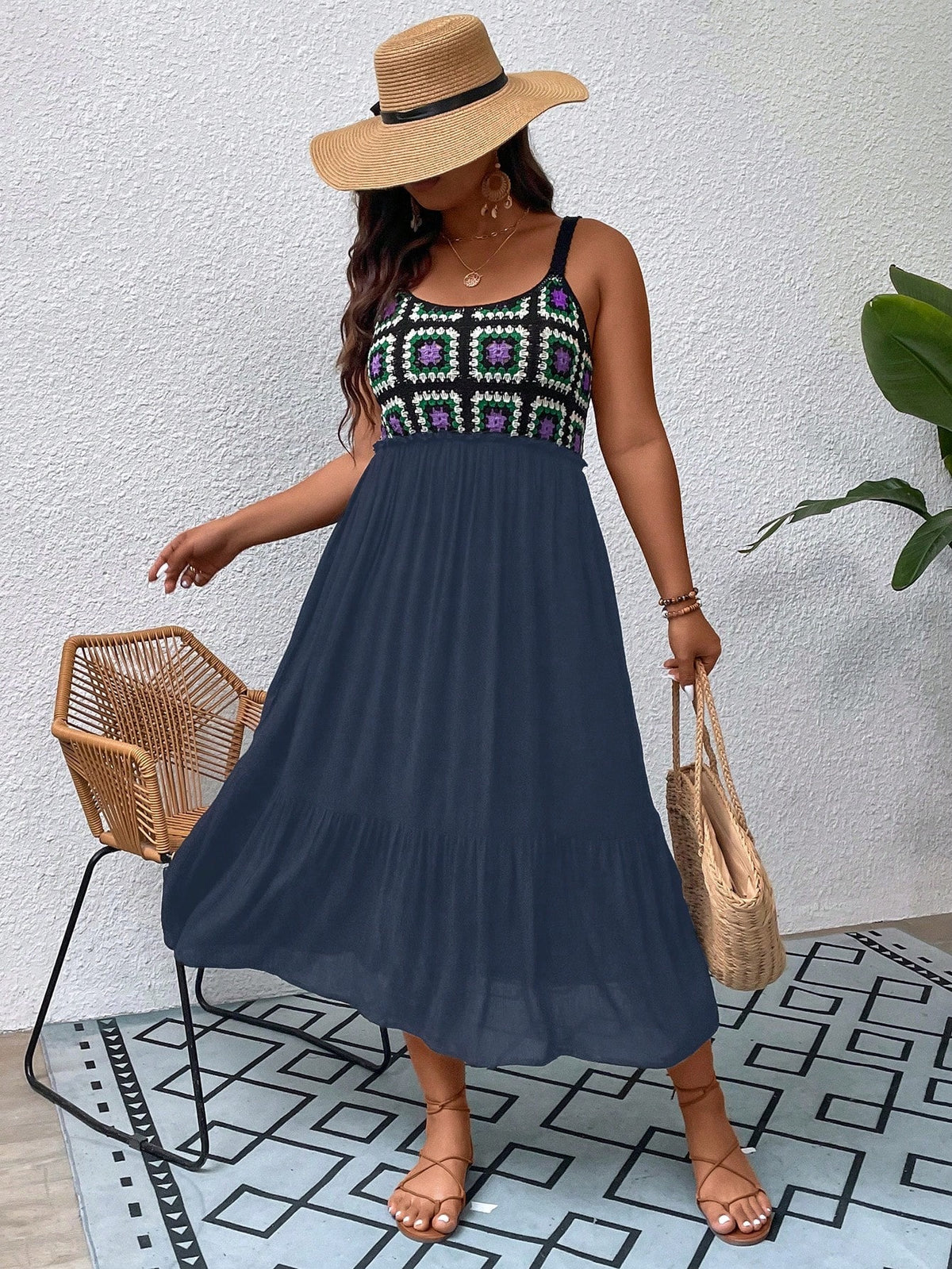Plus Crochet Bodice Cami Dress with Ruffle Hem