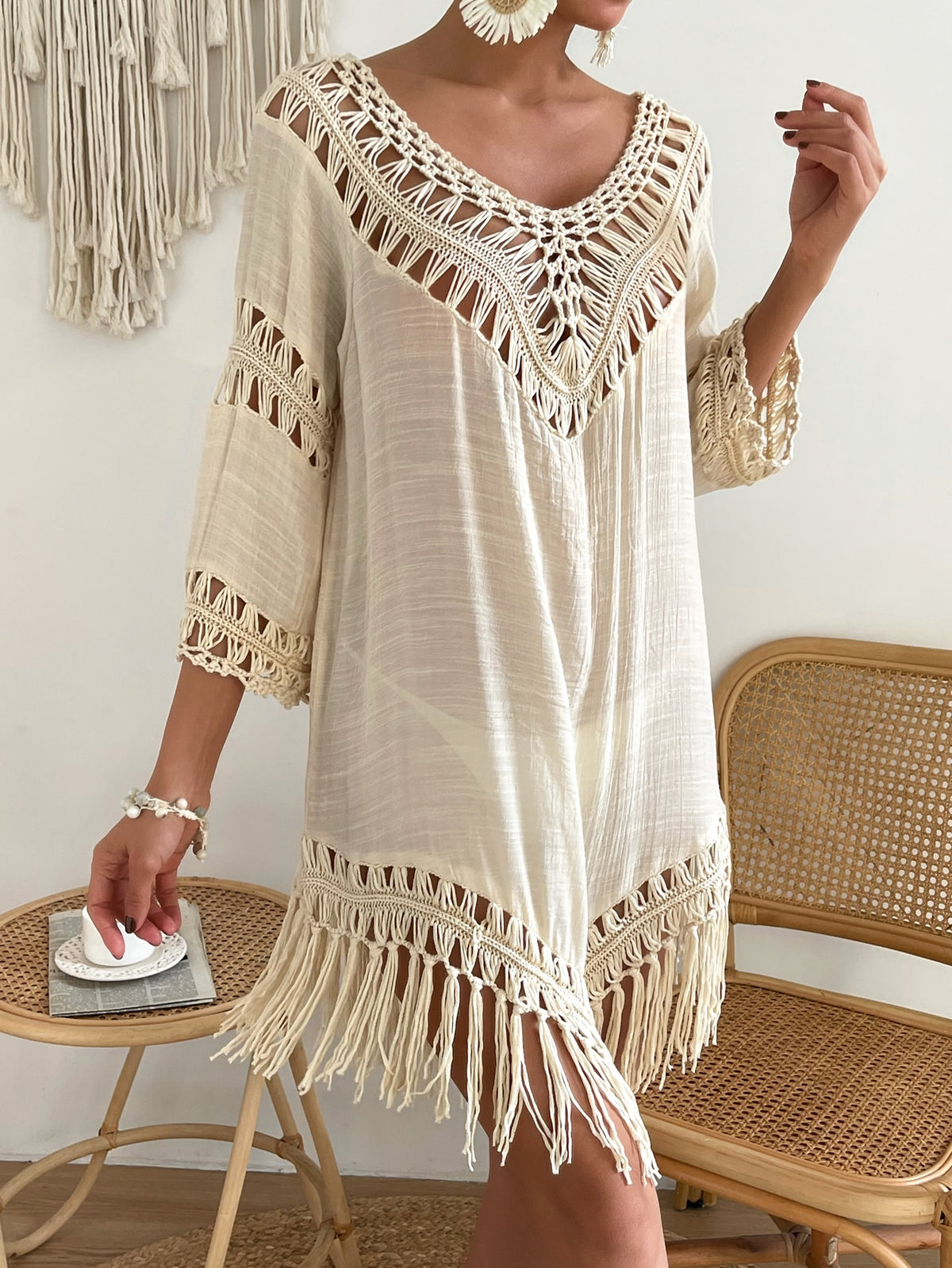 Drawstring Waist Swim Cover Up with Pompom Trim